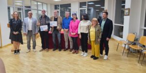 L'escriptor, músic i guitarrista del grup Odara Trio rep el guardó a l'ajuntament de Suances, a Cantàbria, pel relat curt 'La caja de munición'