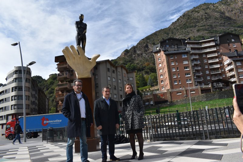 L'artista Àngel Calvente ha dissenyat una obra formada per una mà que sustenta una persona amb mascareta