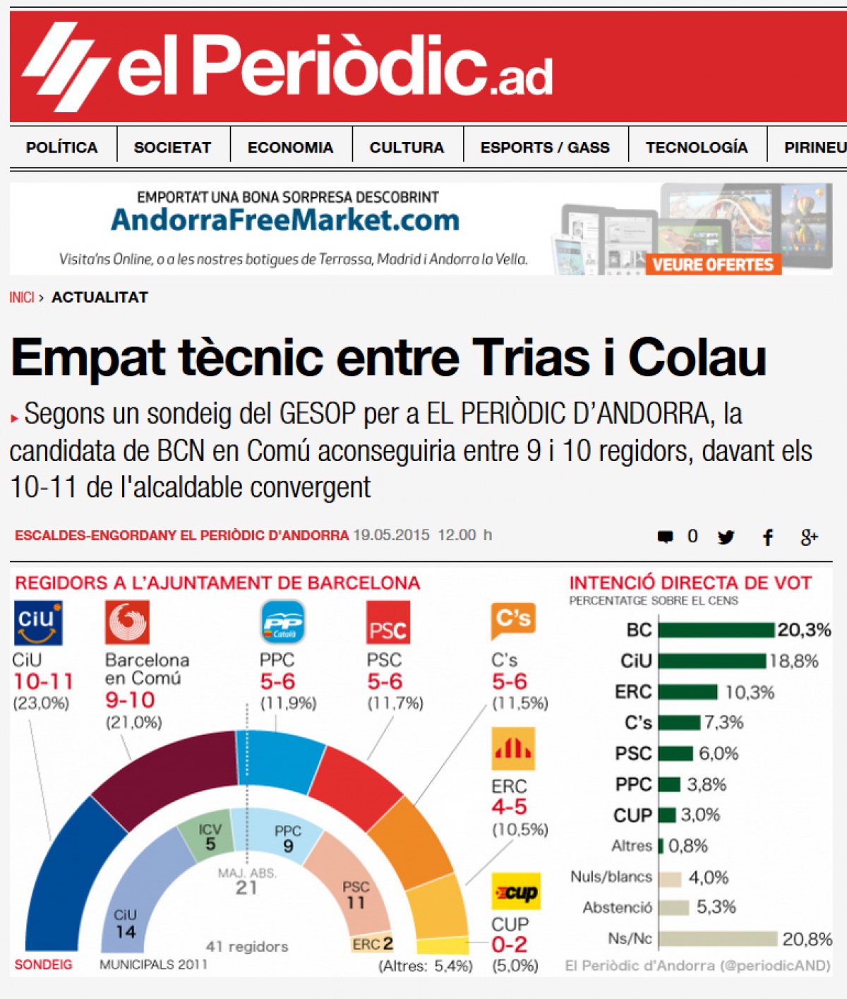 Fins dissabte, ‘www.elperiodic.ad’ difondrà un sondeig sobre la intenció de vot a Barcelona