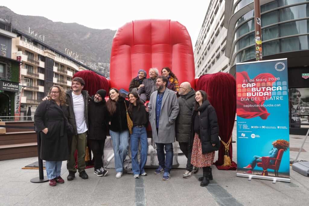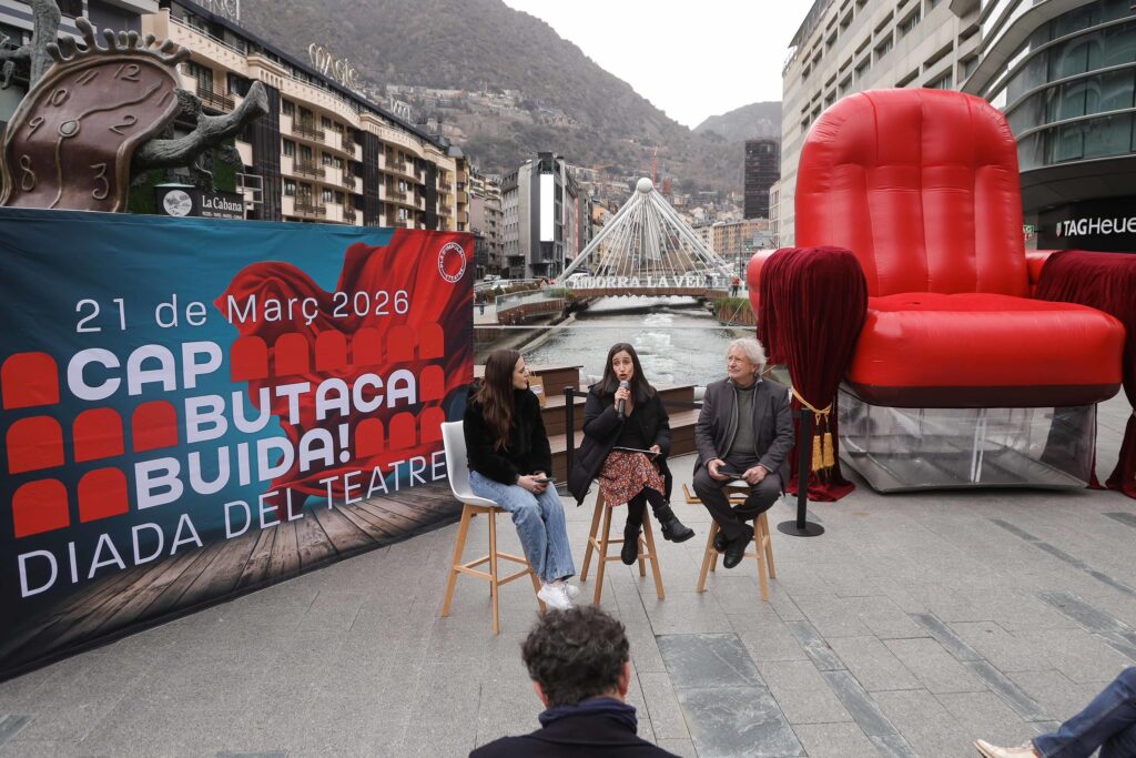 Una butaca gegant plantada a la plaça de la Rotonda ha estat aquest matí la imatge més visible d’una iniciativa que vol anar molt més enllà de la fotografia. Andorra la Vella s’adhereix per primera vegada al projecte ‘Cap Butaca Buida‘, que enguany celebra la seva tercera edició, i ho fa amb la voluntat clara de convertir el 21 de març en una jornada de teatre amb el Teatre Comunal ple.