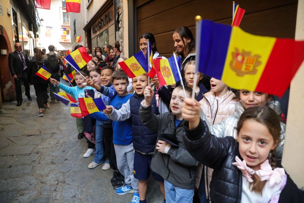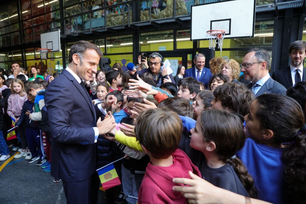 El matí educatiu s’ha clos a Santa Coloma, on Emmanuel Macron ha assistit a una classe de flora i fauna impartida en català i francès. Just després, acompanyat del copríncep episcopal, Josep-Lluís Serrano Pentinat, d’Ensenyat i d’Espot, Macron ha fet un recorregut a peu des de la plaça Príncep Benlloch fins a Casa de la Vall, on més alumnes amb banderes els han donat caliu.