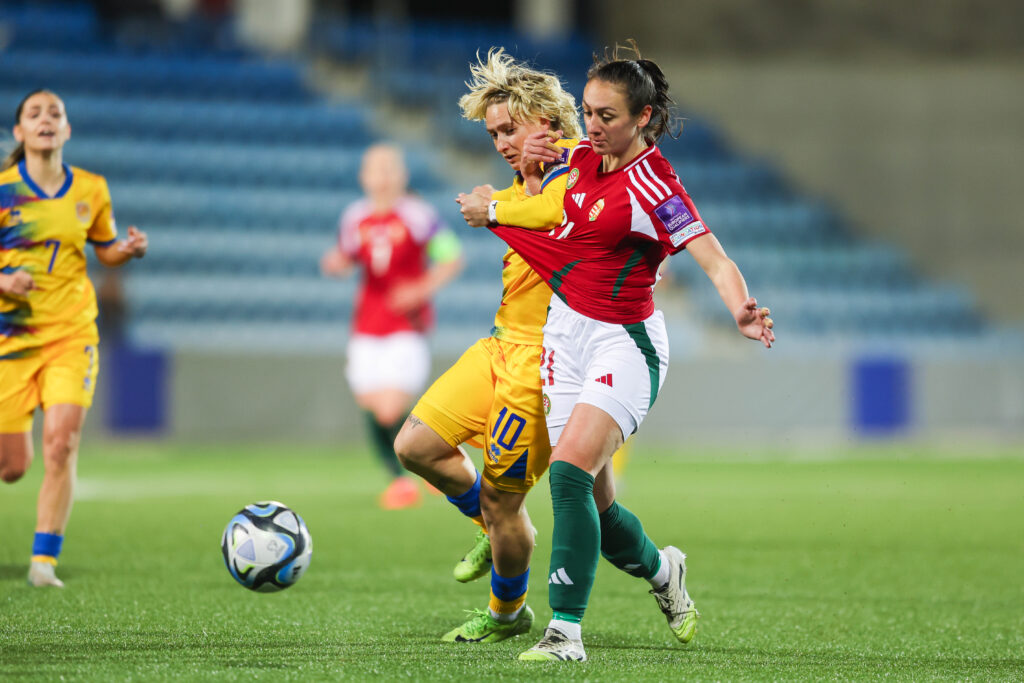 Al llarg dels 45 minuts inicials, i amb les d’Albert Panadero gaudint d’alguna arribada a l’àrea rival, han estat les capitanejades per Henrietta Csiszár les que han pogut trencar la igualada en més d’una vegada. La més clara, de nou, amb Mayer, qui ha vist com una rematada dins l’àrea es topava amb el pal (37′). A més, durant la primera meitat, cal destacar que les visitants han gastat dues finestres de canvis amb les dues centrals. La primera a sortir ha estat Hanna Németh per donar lloc a Laura Kovács, un canvi sobre el paper tàctic (14′), mentre que la segona ha estat una lesionada Beatrix Fördős perquè entrés Virág Nagy (34′).