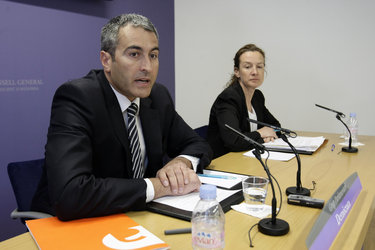 - Els consellers demòcrates, Xavier Montané i Sílvia Calvó expliquen les esmenes presentades al projecte de llei de modificació de la CASS, ahir Foto: ÀLEX LARA