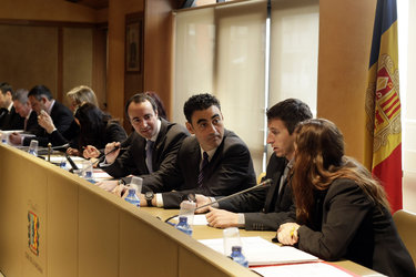 - Els cònsols, David Baró i Rauel Ferré, presideixen el Consell de Comú de la Massana, ahir al matí Foto: TONY LARA
