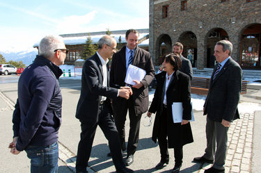 - Martí saluda Ferrer i Baró, ahir l’estació de Pal, on va assistir al dinar posterior a la reunió de cònsols Foto: ANA / M.C.