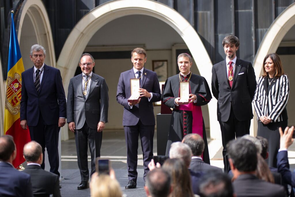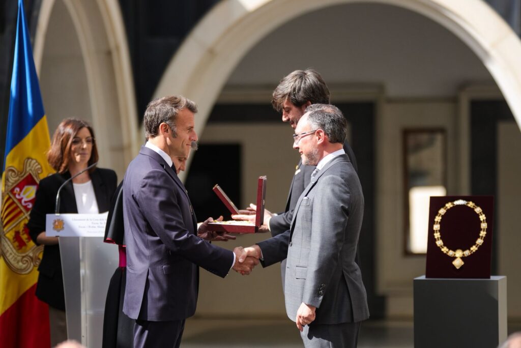 En aquest sentit, Macron ha incidit en la dimensió de servei del càrrec, afirmant que la funció de copríncep “significa molt més” que el que estableix el càrrec formal i que es construeix amb la relació amb el país. Així, ha defensat que aquesta responsabilitat es “reinventa” cada vegada que s’exerceix, “en venir aquí i prendre’n la dimensió, la reinventem al vostre costat”. D’aquesta manera, ha subratllat que aquesta distinció reforça el compromís amb el poble andorrà, assegurant que “tenim el sentiment i la convicció que som aquí per servir-vos, que estem al servei del poble d’Andorra”, i ha reiterat “la voluntat de continuar servint per estima i fidelitat al Principat, al seu poble i a tots aquells que en formen part”.