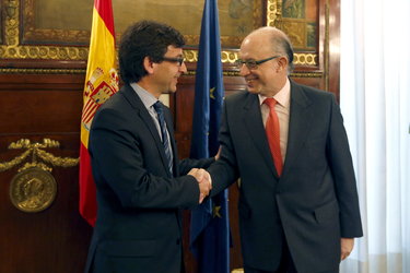 - El ministre Cinca és rebut ahir a la seu del Ministeri d’Hisenda espanyol, pel ministre Montoro Foto: EFE / JAVIER LIZÓN