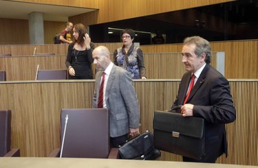 - Barcia i Bartumeu, en primer terme, i Bonet amb Gonzàlez, en segon, arribant als seus escons Foto: TONY LARA