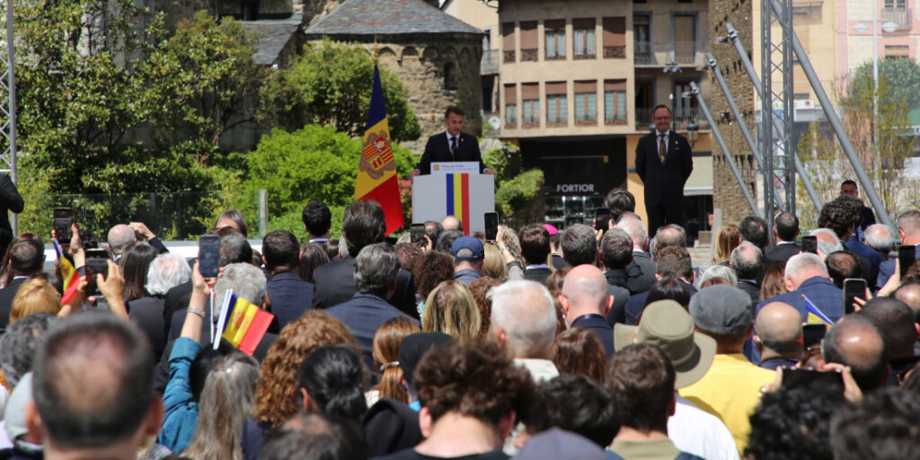 Tot seguit, ha passat al tema central del seu discurs: les relacions amb la Unió Europea: “L’espai europeu és, per la seva pròpia naturalesa, l’espai natural d’Andorra”. Així, el president francès ha subratllat que l’Acord d’associació és “una oportunitat estratègica, però també una elecció que exigeix responsabilitat”. A més, ha advertit clarament que, si el poble andorrà rebutja l’acord, l’impuls d’integració europea podria perdre’s de manera irreversible o fins i tot quedar definitivament aturat. Així doncs, ha tramès el missatge principal: la integració europea és el següent pas lògic, no una ruptura, sinó una continuïtat evolutiva.