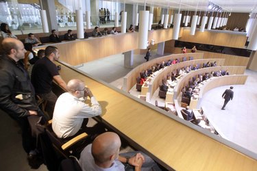 - Membres dels sindicats de policia omplen l’espai destinat al públic de la sala de plens, ahir. Foto: TONY LARA