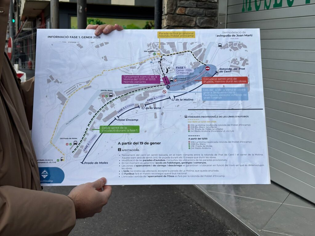 Les obres de remodelació de l’avinguda Joan Martí han començat aquesta setmana amb l’inici de la primera fase, que afecta directament el carrer de la Molina. “El carrer de la Molina es veurà afectat durant dos mesos, que estarà tancat a la circulació, però sí que es podrà passar parcialment per una de les voravies”, ha explicat el cònsol menor d’Encamp, Xavier Fernàndez. El tram afectat comprèn des de l’encreuament del carrer de la Molina fins a la rotonda del Prat de Genil, amb restriccions tant en sentit nord com sud. Un cop transcorreguts aquests dos mesos, el carrer es reobrirà en sentit de pujada.