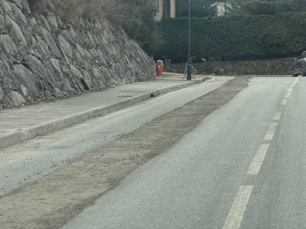 “Ens hem queixat diverses vegades al comú”, afegeix una altra font, indicant que si bé els operaris netegen la calçada, acaba quedant igualment bruta. Encara més en setmanes com aquesta, en la qual s’esperen pluges. Més enllà de l’estat actual d’aquest tram concret, els veïns també lamenten la feina ja feta. “En algun punt s’ha hagut de fer una obertura perpendicular −d’una voravia a l’altra, més enllà només del carril de baixada−, i quan tornen a asfaltar deixen uns bots que són per tenir-los en compte, perquè queden quatre dits per sota del que toca”, completa un altre resident.