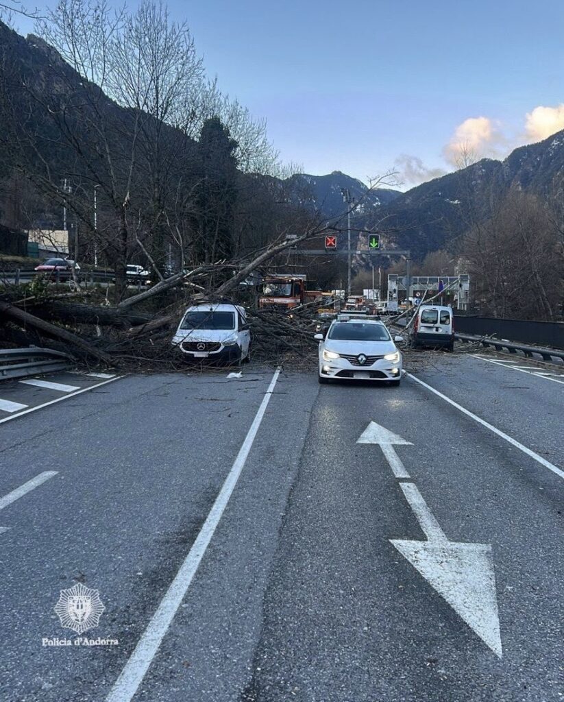 La carretera general 1 (CG1), concretament l’avinguda Salou, ha quedat tallada aquest matí en ambdós sentits a causa de la caiguda d’un arbre de grans dimensions sobre la calçada, en el tram comprès entre l’Estadi Comunal i la rotonda de la Comella. Segons ha informat la Policia d’Andorra, l’incident ha obligat a interrompre la circulació en aquest punt i a activar un dispositiu per retirar l’arbre i garantir la seguretat viària.